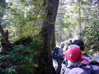 尾瀬沼の沼尻から今日の宿である尾瀬小屋に向かう。途中の白砂峠ではまだ残雪があり、滑りやすいので注意して歩く。岩がごつごつした道で登り下りがある。